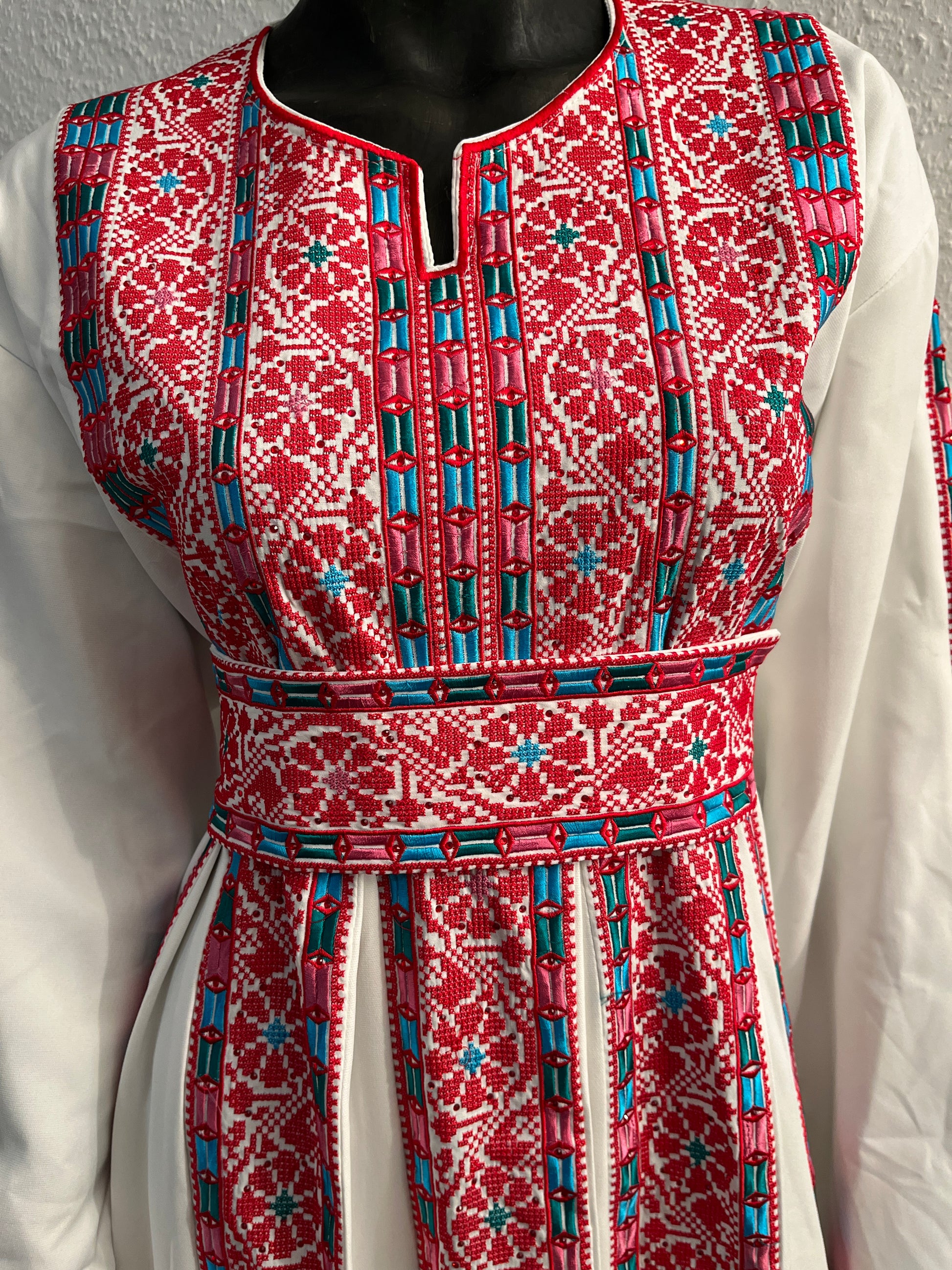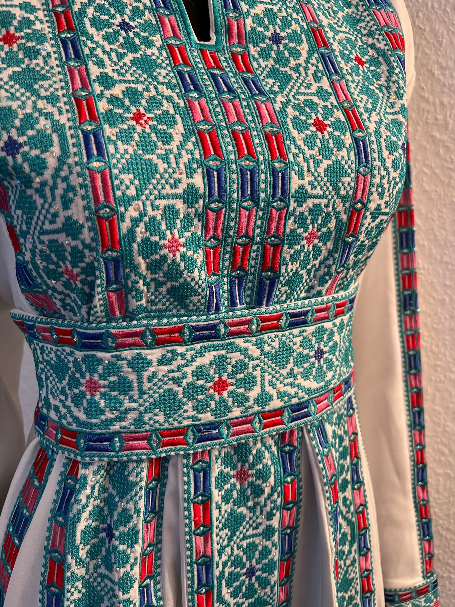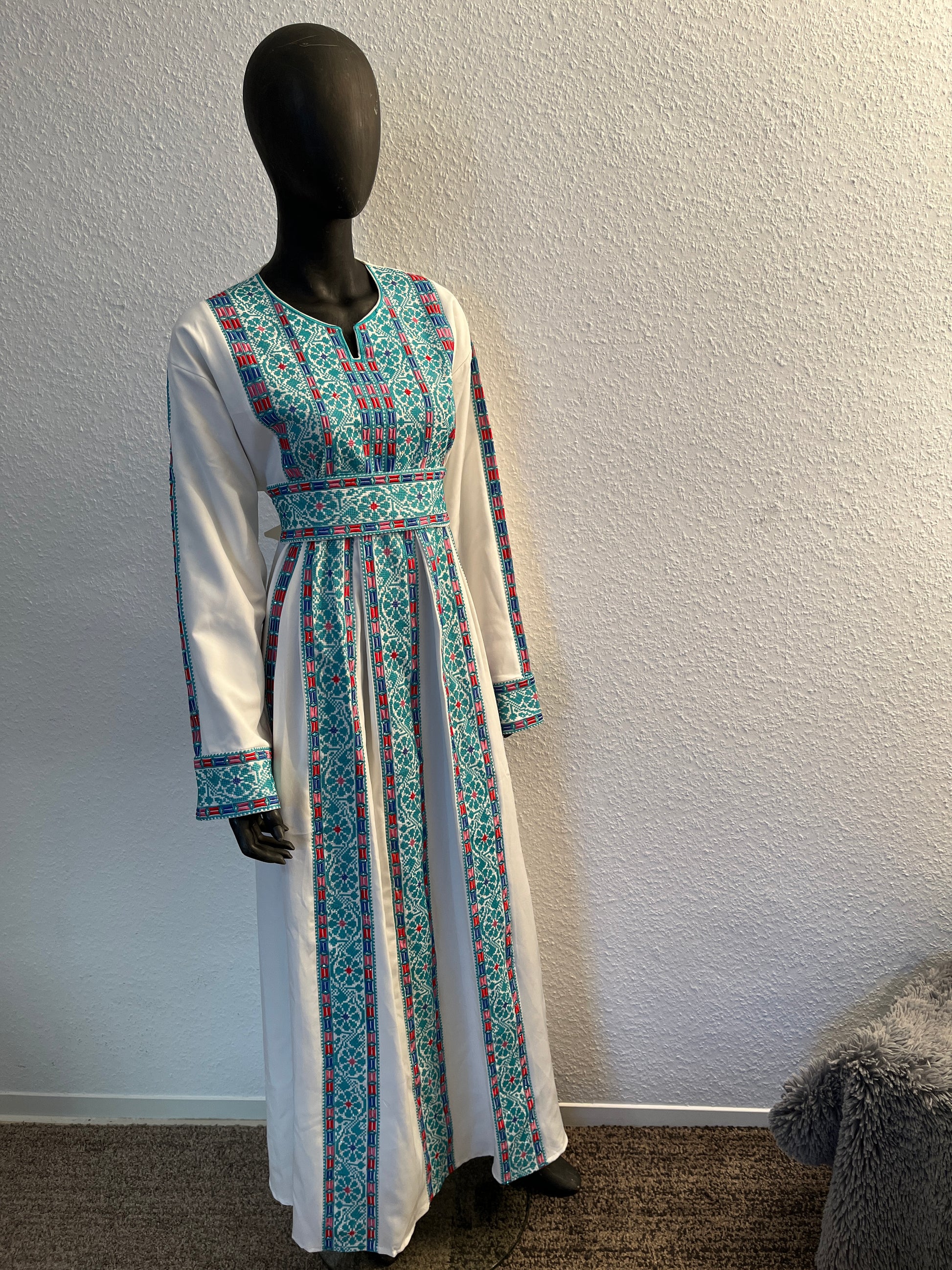 Erlebe zeitlose Eleganz mit unserer White Glitzer Palästina Abaya.