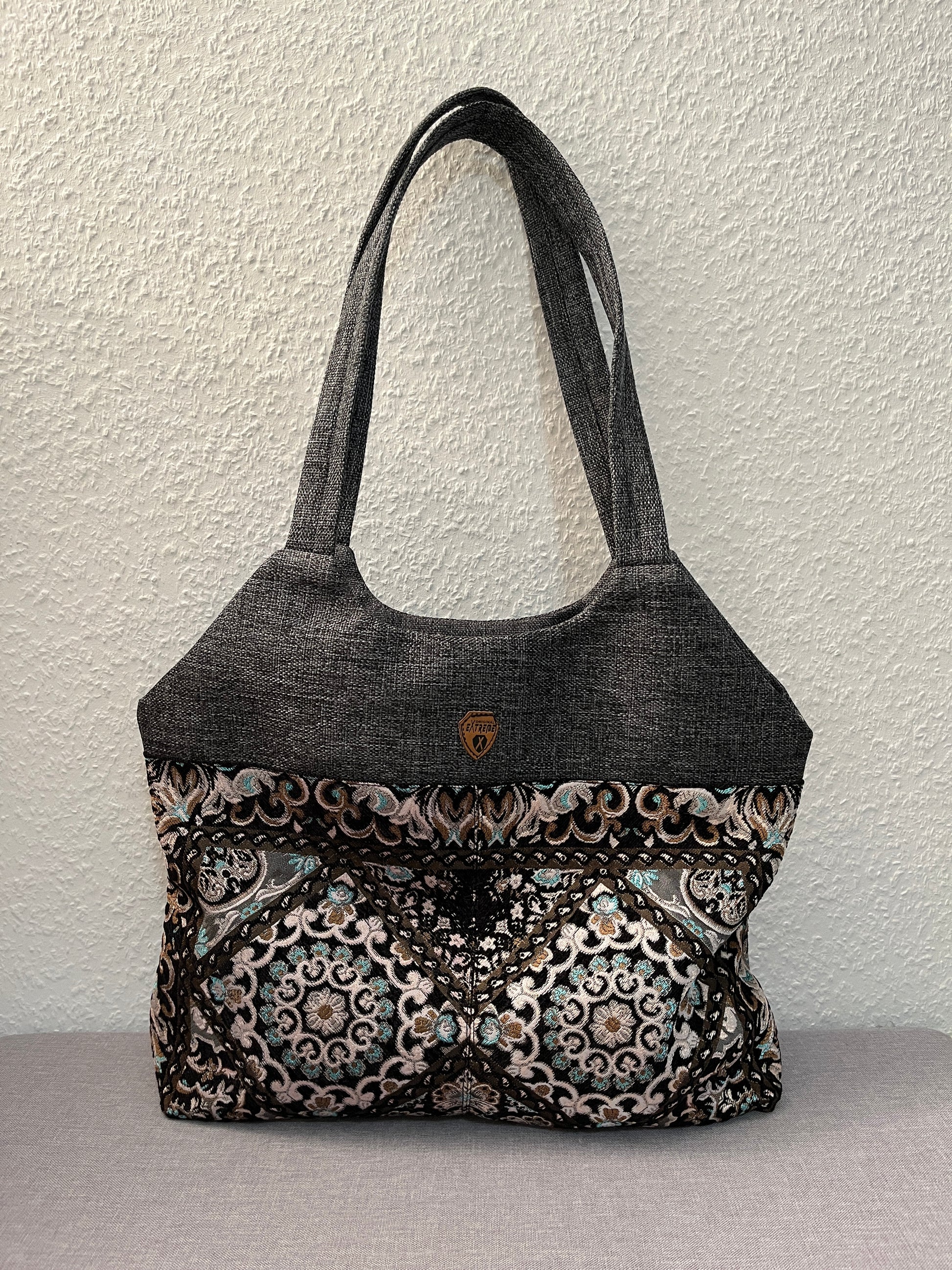 Unsere neuen Shopper Bags aus Damaskus verbinden traditionelle Handwerkskunst mit modernem Design. Sie sind besonders stabil verarbeitet, bieten viel Platz und lassen sich dank Reißverschluss sicher verschließen.